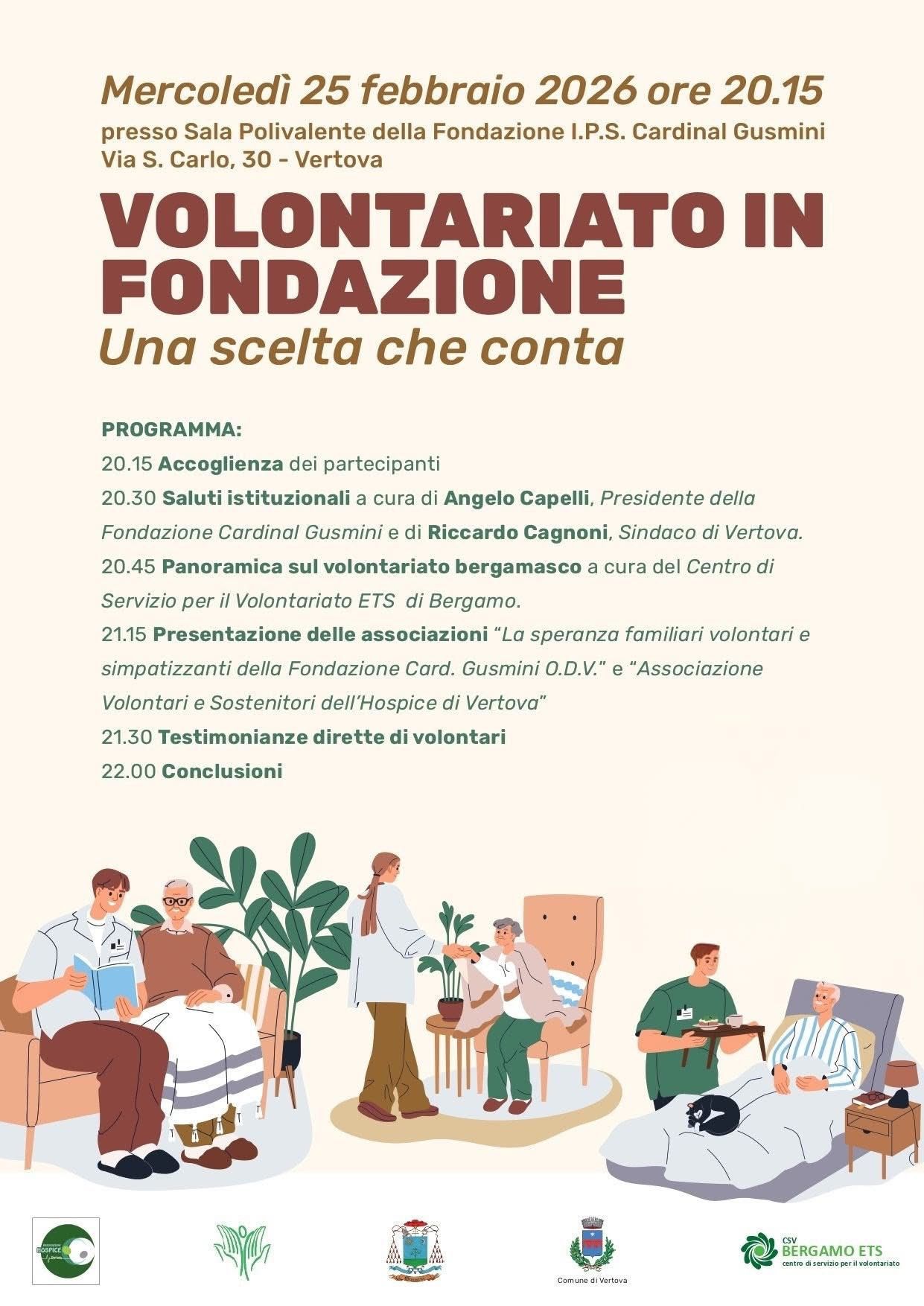 Mercoledì 25 febbraio 2026 ti aspettiamo a Vertova per una serata dedicata al valore del volontariato, alle esperienze dirette e all’impegno che fa la differenza nella vita delle persone.